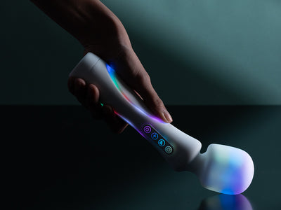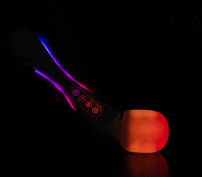Crafted from ultra-soft silicone with integrated RGB illumination, the wand includes a charging cable and stand, transforming it into an ambient mood light when not in use.